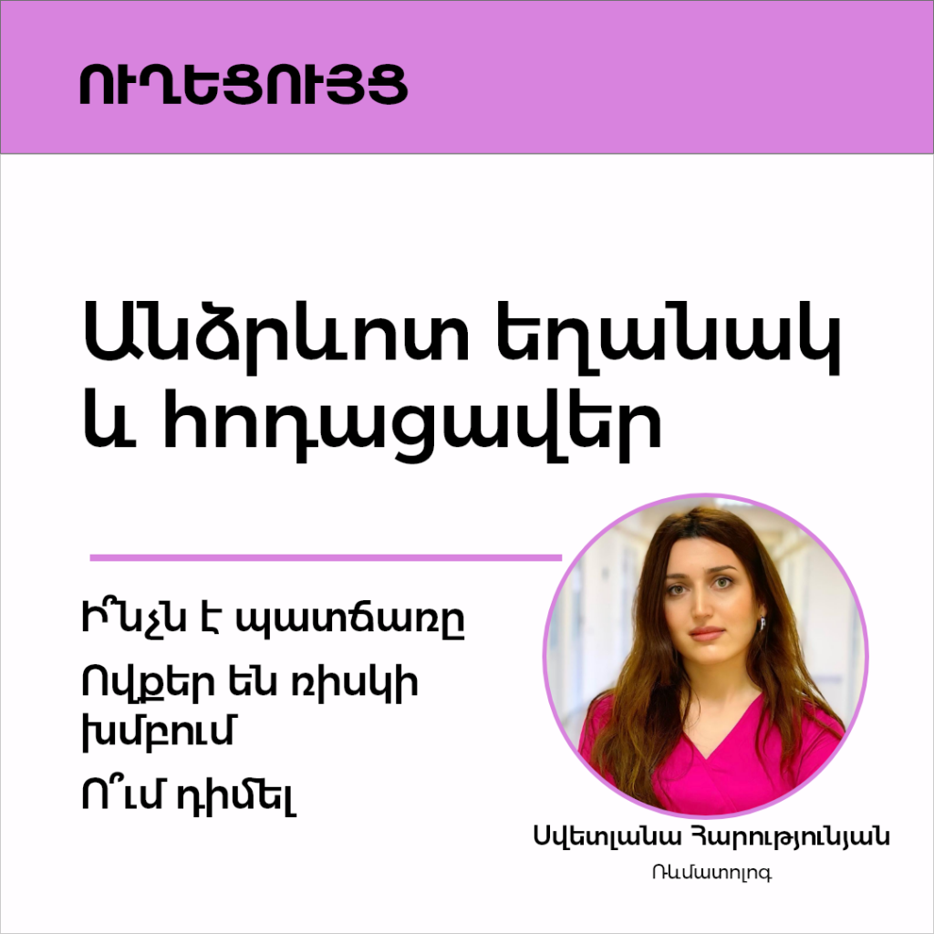 Նյութը պատրաստվել է ռևմատոլոգ Սվետլանա Հարությունյանի հետ համատեղ։